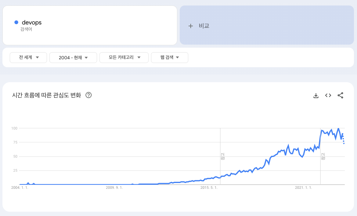 지금 사용하는 데브옵스(devops)라는 단어는 2004년에 처음으로 등장하고, 2010년에 본격적으로 사용한 것으로 보입니다.