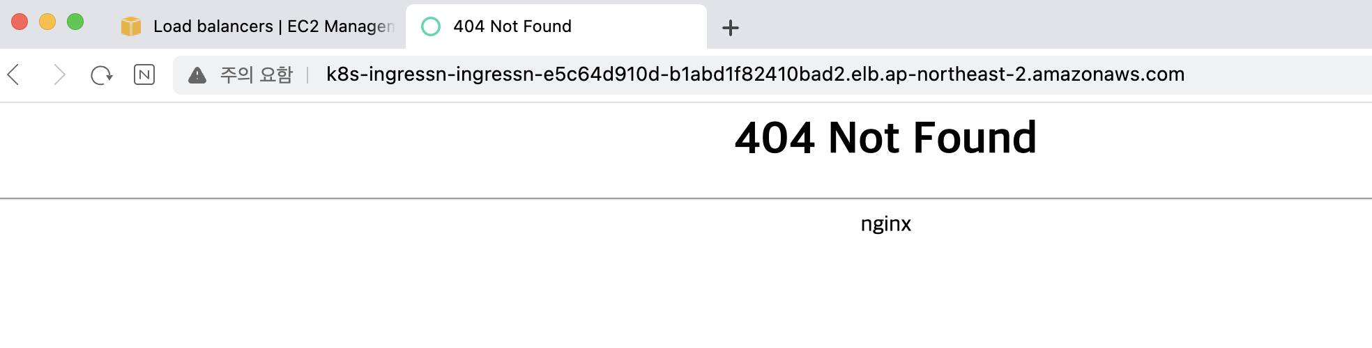 콘솔에서 확인 가능한 LoadBalancer의 DNS name (또는 svc의 EXTERNAL-IP)으로 접근했을 때, 404 Not Found가 나오면 성공